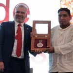 Morelia, Michoacán, a 10 de octubre de 2025.- El doctor Omar Masera Cerutti, Premio Nóbel de la Paz 2007 y actual investigador del Instituto de Investigaciones en Ecosistemas y Sustentabilidad de la Universidad Autónoma de México (UNAM) visitó la Universidad Michoacana de San Nicolás de Hidalgo (UMSNH) para compartir su invaluable experiencia con la comunidad estudiantil y docente, quien fue recibido por la rectora Yarabí Ávila González.